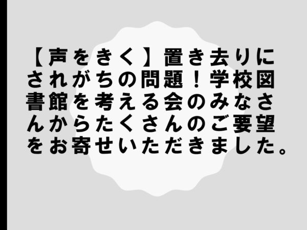 今、図書館政策が動いているんですけど、その中で、学校図書のことについては、少し置き去りになっているかなという感じがしておりますので、改めて学校図書館の役割、あるいは学校司書さんの役割などを聞かせていただきました。非常に勉強になりました。学校司書の専門性をよく理解してもらいたいということを強調されました。そんな中で、勤務時間が削られてしまうということが言われました。抑えられてしまうというんですね。その中で、本来であれば、もっともっとこういう役割を果たすために仕事をしていきたいということがあるんですけど、それが機械的に抑えられてしまうということなので、それはぜひ実態を聞かせていただきながら、交渉もしていきたいというふうに思います。