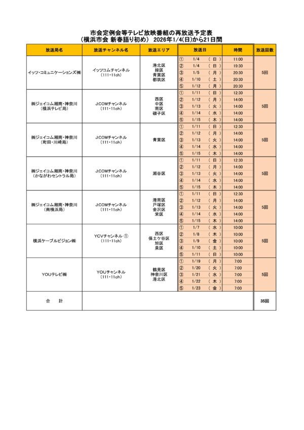 2026年第1回定例会(予算議会)と登壇者のお知らせ予定期間 1月28日~3月24日 請願・陳情の受理期限1月28日提...