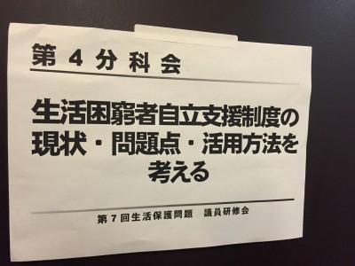 翌日は、分科会「生活困窮者自立支援制度の現状・問題点・活用方法を考える」に参加。