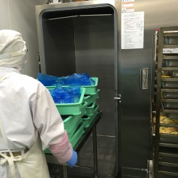そして完成すると、この機械に入れて熱々のものを急速に温度を下げて、18℃にします。