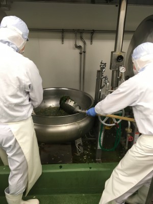 もう一つ扉をあけると、調理の現場。この部屋では、藤沢市の中学校給食(約2000食分)とハマ弁(約1200食分)がつくられていました。