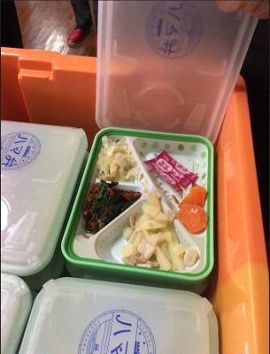 学校に着くと、この製造会社が雇っている方が受け取り、生徒に手渡し、容器を受け取り、また車に乗せて終了。