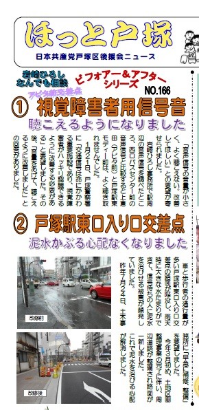 車と歩行者の通行量が多い戸塚駅東口入り口交差点の路面が陥没し、雨天時に大きな水たまりができて、信号待ちの人に泥水を浴びせる被害が頻発していました。