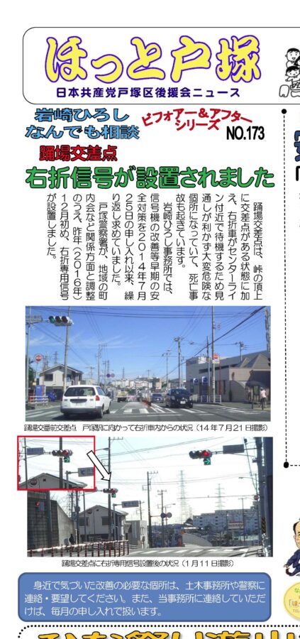 岩崎ひろし事務所では、信号機の改善等早期の安全対策を2014年7月25日の申し入れ以来、繰り返し求めていました。