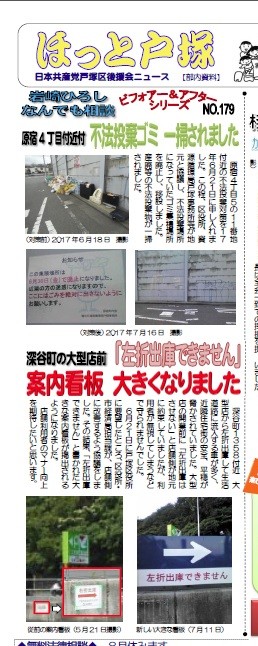 原宿4丁目5の11番地付近の不法投棄対策を申し入れました。区役所や資源循環局が地元と協議し、不法投棄場所になっていたゴミ集積場所を廃止・移設したことで、不法投棄物が一掃されました。