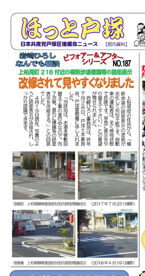 岩崎ひろし事務所は、昨年7月28日、戸塚土木事務所、戸塚警察署に申し入れました。