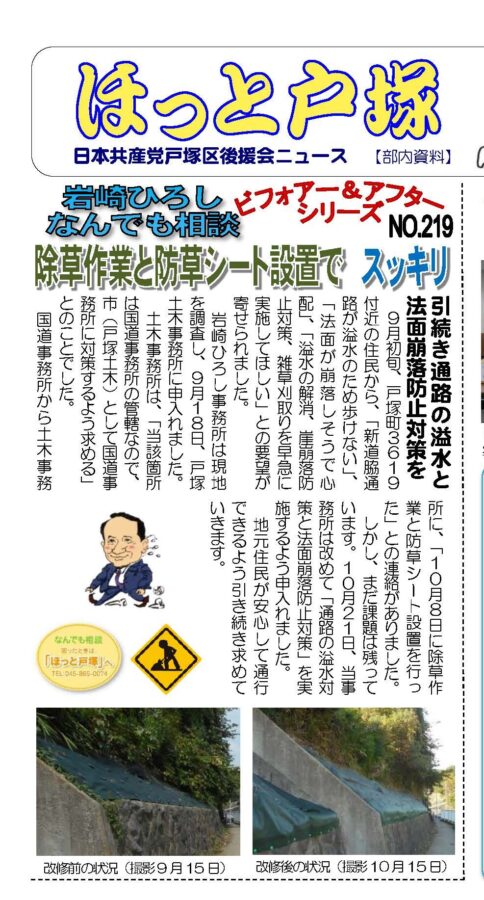 岩崎ひろし事務所は現地を調査し、9月18日、戸塚土木事務所に申入れました。