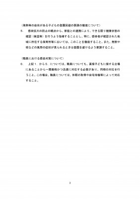 私からは、まず国の通知通り、感染した子どもや職員等から陽性患者が出た場合には速やかに臨時休園にする、ことを求めました。