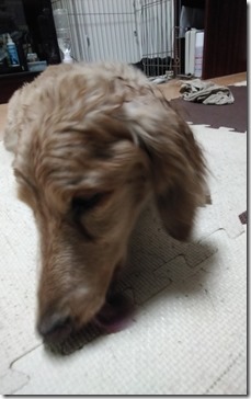 レンジとお散歩にでたけど、今度は、急いで敷地から出て、側溝に小さい方をして、Uターン(^_^;) お庭に行き、草をはむはむして帰宅。レンジは、足を拭くタオルが濡れた時に限って、リビングにその足ふきタオルを持って走ってくるので困る(^_^;) 悪いことをしているという認識があるので「あっ!また持って来たの??」と言うとうつむくのが可愛い(^。^) 持って来ても、戻すことはしない(^_^;)