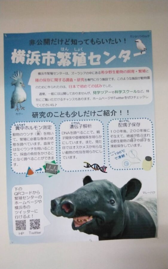 12日の9時にズーラシア管理センターから車で、繫殖センターへ。初めて伺う繫殖センターは野毛山動物園とほぼ同じ広さの約3.3㌶と聞きました。ここには、世界でも横浜でも希少な絶滅に瀕している鳥や動物、カエルなどの繁殖、種の保存のための人工交配、精子や卵巣の凍結保存も行っています。