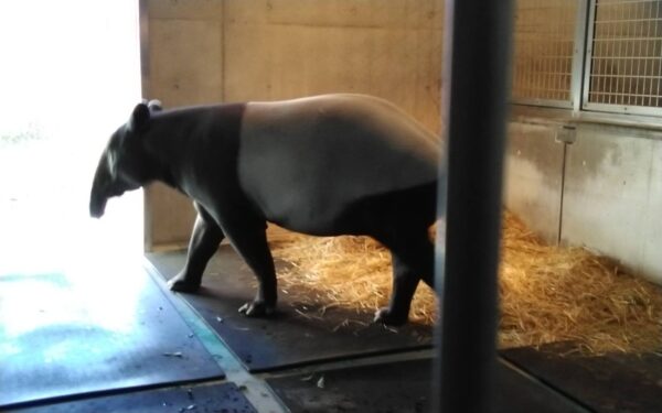 センター長は「ここにいる動物で4本脚は、マレーバクだけです。」と、建物に入る前に話され、「あちらの建物には、ライチョウの繁殖をしている施設です。鳥インフルエンザが流行しているので、お見せすることはできませんが、やっと冷房を切ることができました。寒い所に住んでいるので、空調には気を使います」と、話した。センターの入口で2回目の靴裏の消毒をして、マレーバクの赤ちゃんと対面。「大きい!!」赤ちゃんには、見えないくらいに立派に成長している。すくすく育っていて、何だか嬉しくなる。そして、この繁殖センターの最大の成果。インドネシアのバリ島にしかいないめちゃくちゃ希少な固有種カンムリシロムクと対面。真っ白の羽根、目の淵には、きれいなブルーのアイシャドウを塗っているかのようなきれいなムクドリ。「床に落ち葉が敷いてある部屋の子たちは、カップルが成立して、繁殖の準備をしています。床に落ち葉がない部屋の子たちは、お見合い中です」と、センター長。面白い。カンムリシロムクは、現地で絶滅の危機に瀕していたところ、繫殖センターでは162羽のペアを現地に戻し、現地での繁殖も進められ、街中で再びカンムリシロムクを見かけるまでに個体数を回復したそうです!!