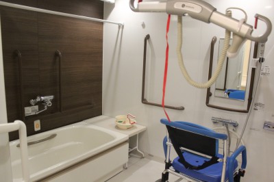 お風呂は、自身で入れる方はそういうお風呂もあり、自力で入れない方は機械浴もあります。